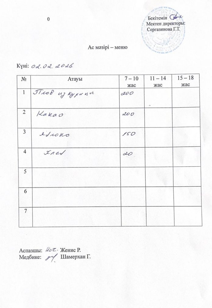 02.02.2026 жыл ас мәзірі