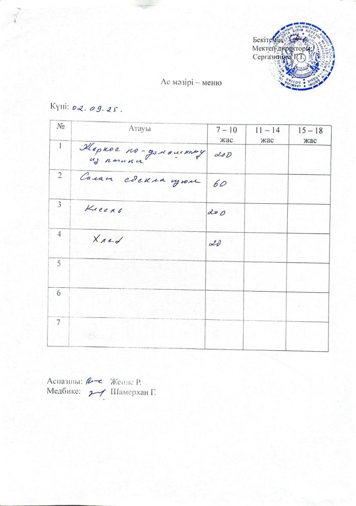 02.09.2025 жыл ас мәзірі