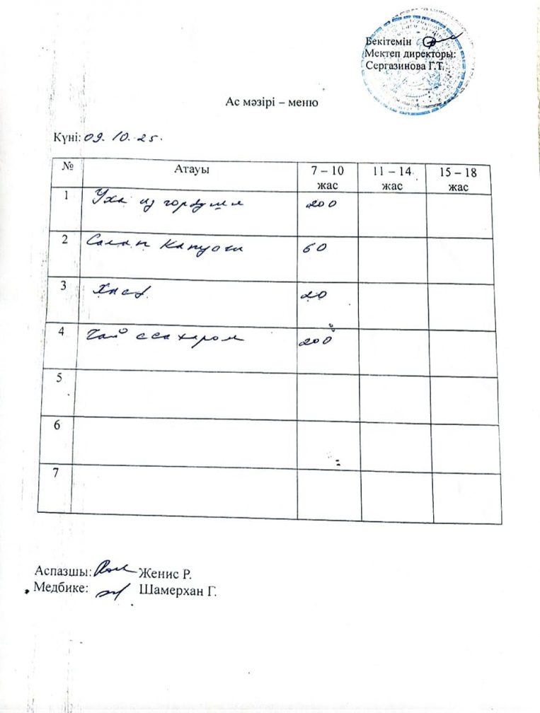 09.10.2025 жыл ас мәзірі