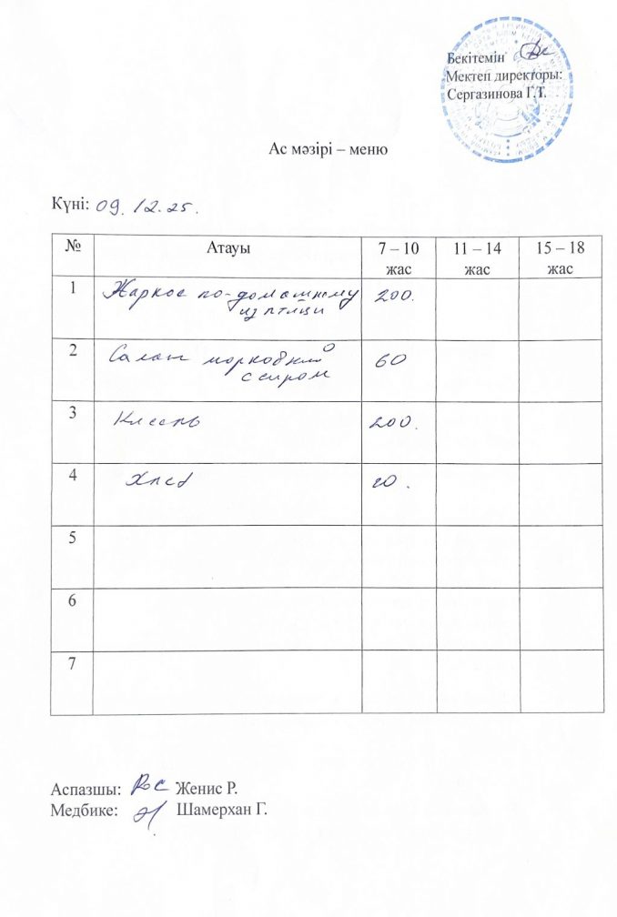 09.12.2025 жыл ас мәзірі