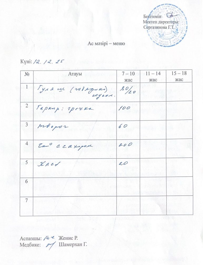 12.12.2025 жыл ас мәзірі