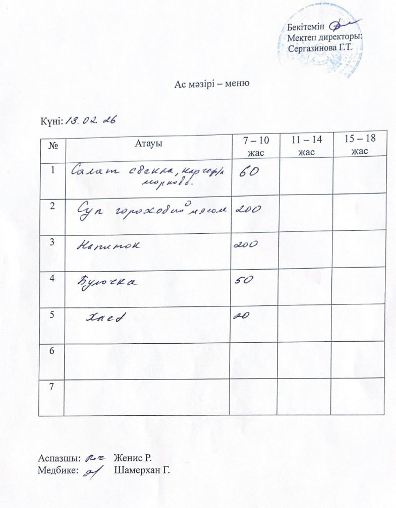 13.02.2025 жыл ас мәзірі