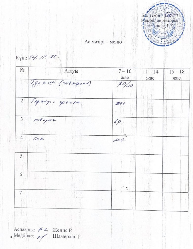 14.11.2025 жыл ас мәзірі