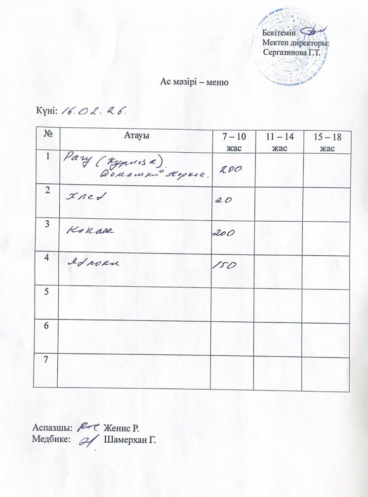 16.09.2026 жыл ас мәзірі