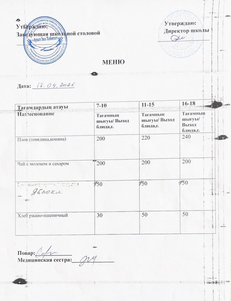 17.04.2026 жыл ас мәзірі