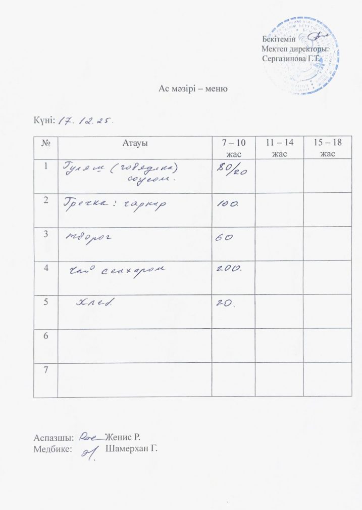 17.12.2025 жыл ас мәзірі