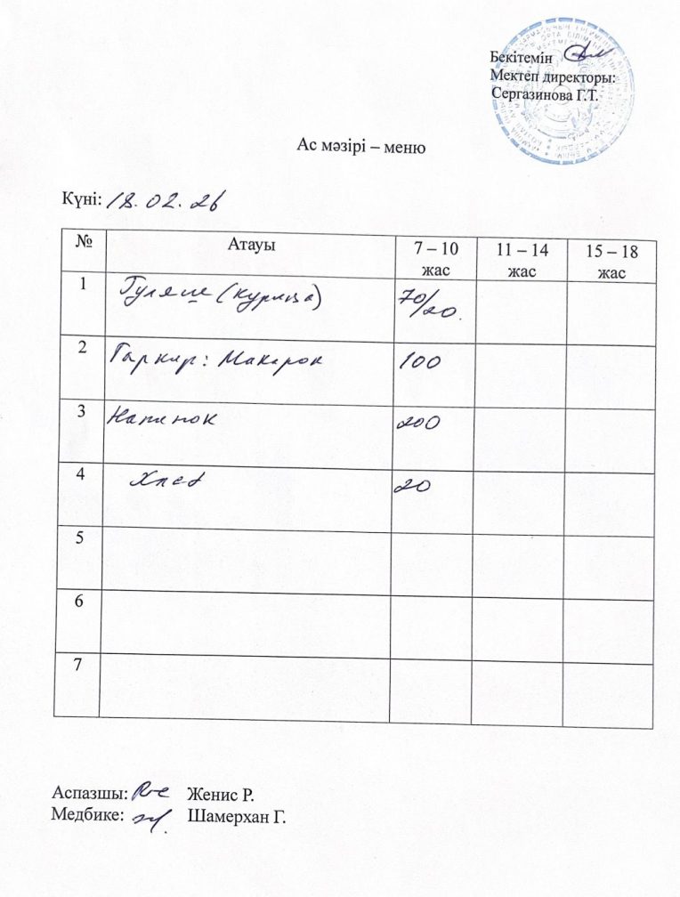 18.02.2026 жыл ас мәзірі