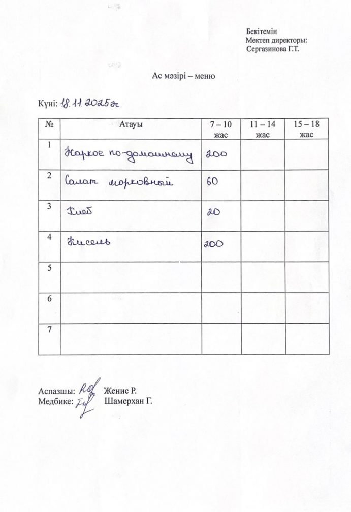 18.11.2025 жыл ас мәзірі