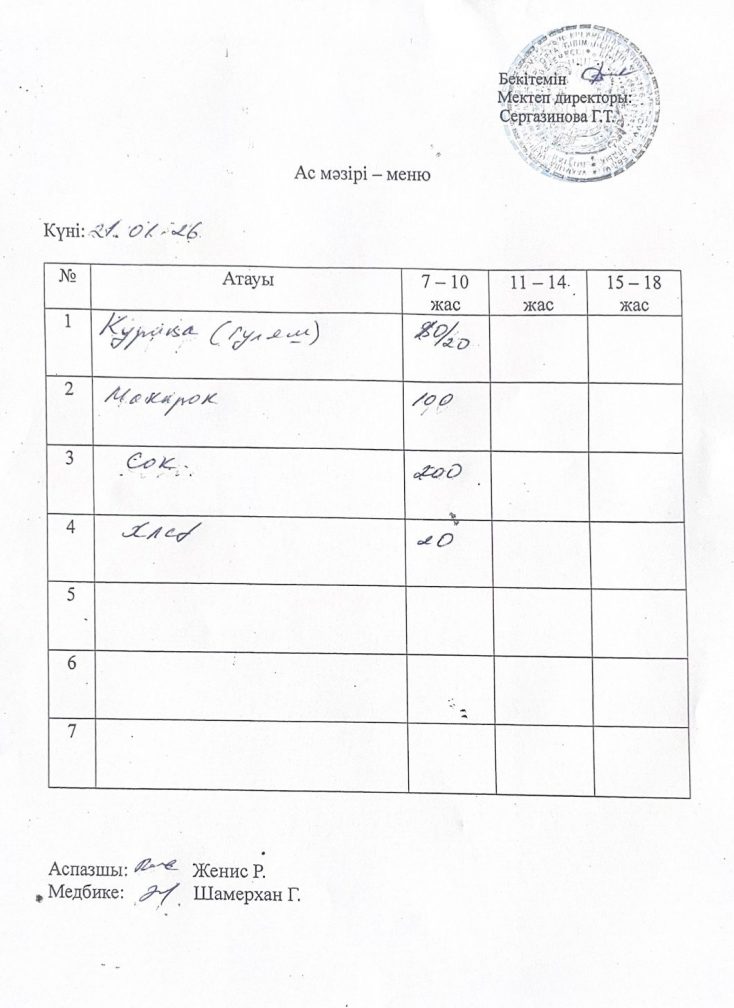 21.01.2026 жыл ас мәзірі