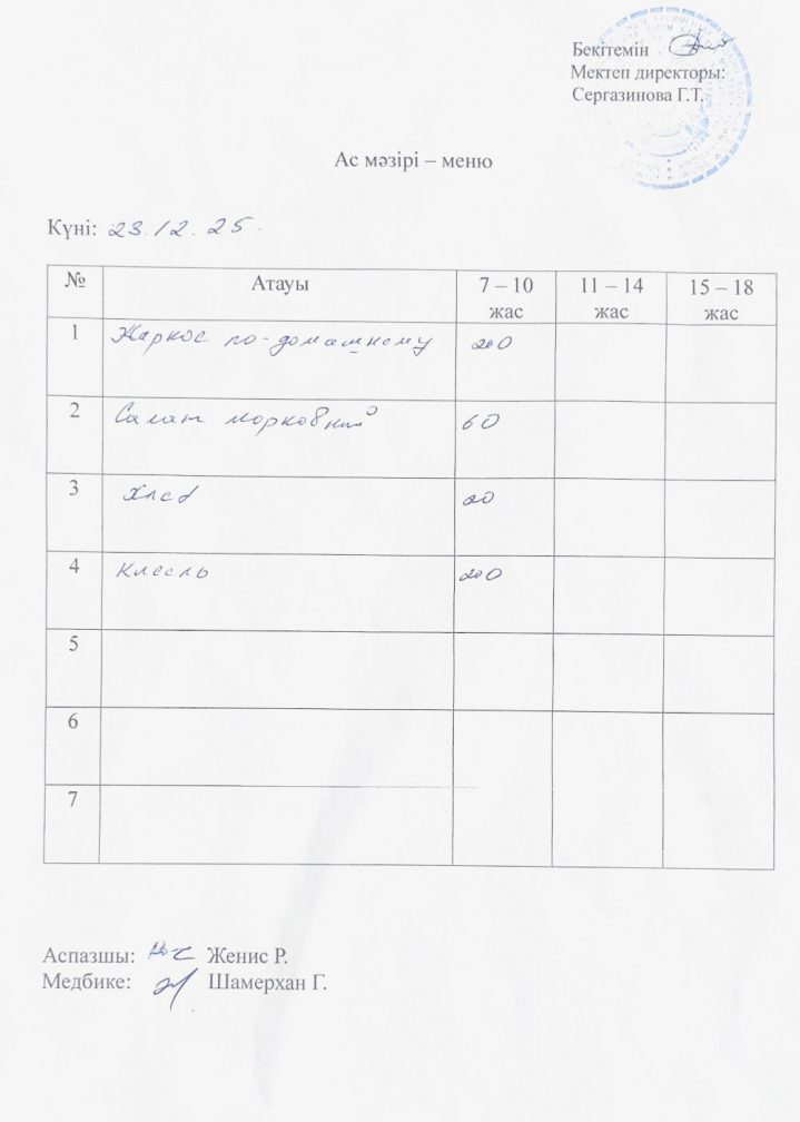 23.12.2025 жыл ас мәзірі