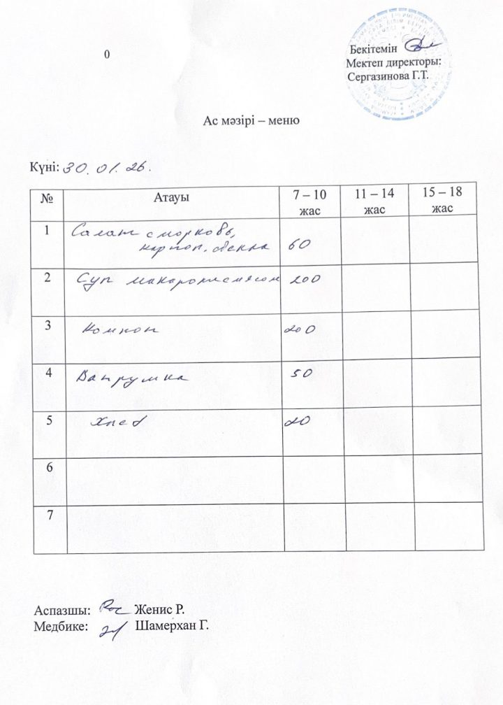 30.01.2026 жыл ас мәзірі