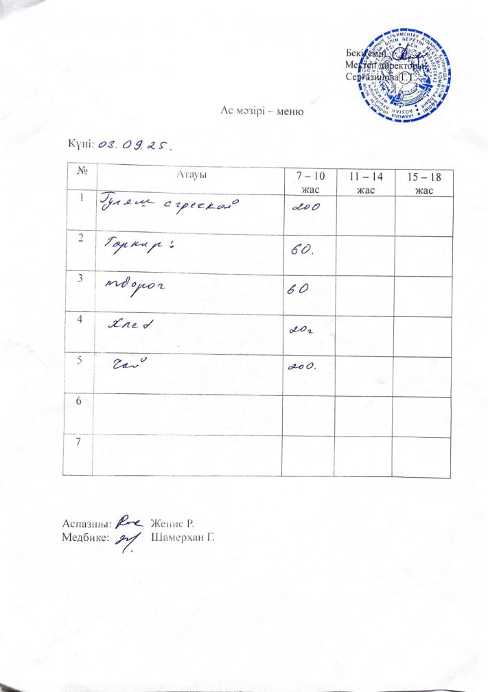 03.09.2025 жыл ас мәзірі